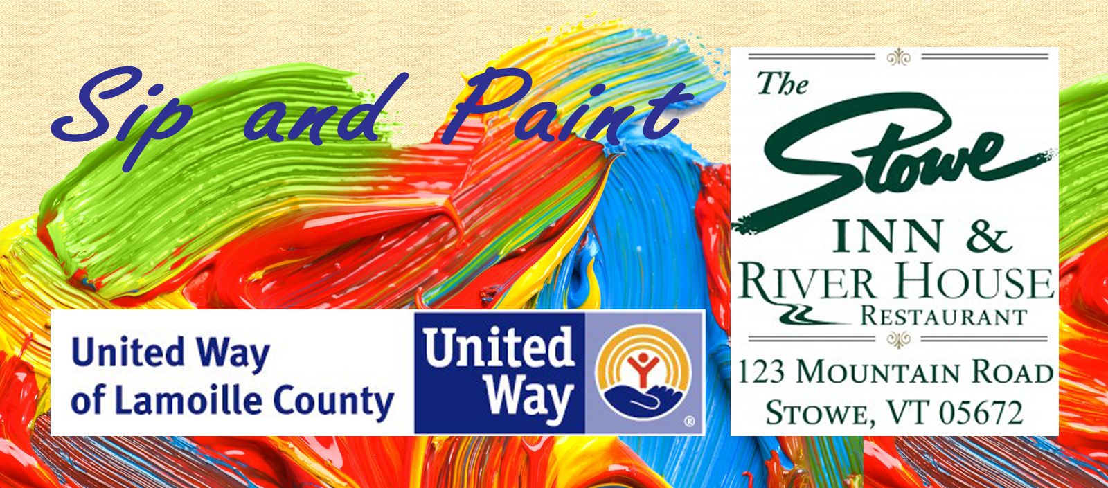 Join us for some painting fun at the Stowe Inn to support The United Way of Lamoille County at The Stowe Inn. $45.00 per person. 13 and up. Hors d'oeuvres and supplies included. Additional food and drinks available for purchase. Having trouble registering? Give us a call 802.888.3252.